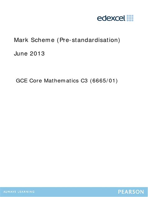 Read Online edexcel c3 june 2013 paper mark scheme Hardcover Open Library